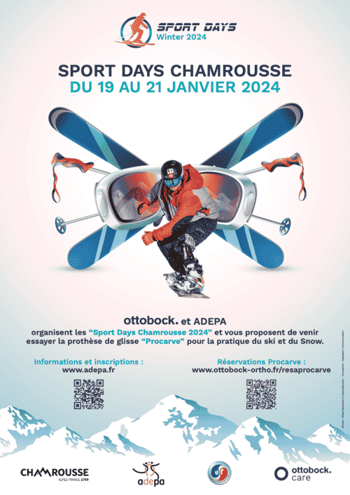 C'est enfin parti, les inscriptions aux Winter Days 2024 Chamrousse organisés par Ottobock et ADEPA démarrent le 1er novembre. Le nombre de places étant limité ne tardez pas top. N'oubliez pas de régler votre cotisation 2024 (nécessaire pour valider votre réservation)...